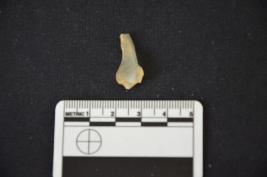 | Description / विवरण | A chalcedony blade with bulb and distal end broken. Use mark on one edge. |