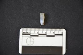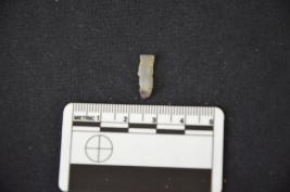 | Description / विवरण | A chalcedony blade with bulb and distal end broken. Use mark on one edge. |