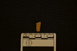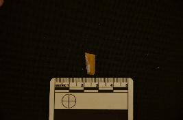 | Description / विवरण | Chalcedony blade fragment has two ridges on dorsal side, striking platform, diffused bulb on ventral side, broken from distal end, retouches on edges and heated. |