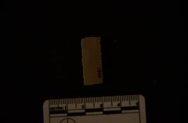 | Description / विवरण | Fragment of chert blade has two ridges on dorsal side, broken from both ends, use-wear marks on cutting edges and trapezoidal cross-section. |