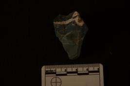 | Description / विवरण | Chert utilized flake has flake scores on dorsal side, striking platform, bulb with errailure on ventral side and use wear marks on working edge. |