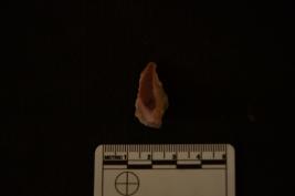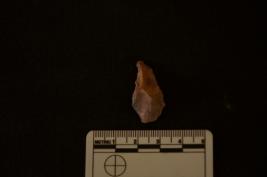 | Description / विवरण | Chert utilized flake has flake scars with partly visible cortex on dorsal side, striking platform, bulb on ventral side and use wear marks on working edge. |