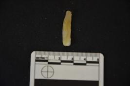 | Description / विवरण | A chalcedony blade heated with bulb and use mark on both the edges. |