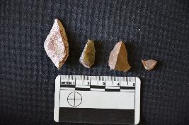 | Description / विवरण | Chalcedony blade has two ridges on dorsal side, striking platform, diffused bulb on ventral side, trapezoidal cross-section and use-wear marks on edges. |