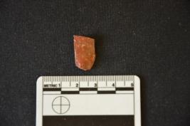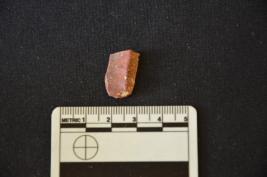 | Description / विवरण | Fragment of chert blade has a ridge on dorsal side, striking platform, bulb on ventral side, broken from distal end, triangular cross-section and use-wear marks on cutting edges. |
