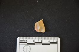 | Description / विवरण | Fragment of chert blade has a ridge and flake scars on dorsal side, striking platform, bulb on ventral side, broken from distal end and use-wear marks on cutting edges. |