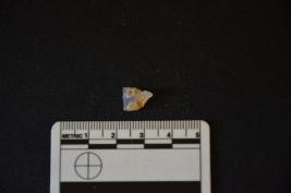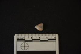 | Description / विवरण | Chalcedony utilized flake has flake scars on dorsal side, striking platform, bulb on ventral side and use-wear marks on working edge. |