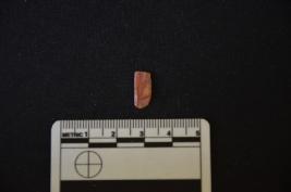 | Description / विवरण | A chert blade has two ridges on dorsal side, broken from proximal end, use-wear marks on cutting edges and trapezoidal cross-section. |