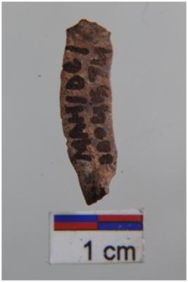 | Description / विवरण | Blade, a ridge on dorsal surface, use-ware marks on both working edge. |