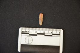 | Description / विवरण | Chalcedony blade has a midridge on dorsal side, striking platform, bulb on ventral side, use-wear marks on cutting edges, triangular cross-section and raw-material given heat treatment. |