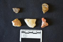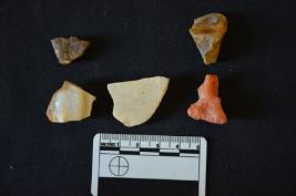 | Description / विवरण | Chalcedony blade has two ridges on dorsal side, striking platform, diffused bulb on ventral side, use-wear marks on cutting edges and trapezoidal cross-section. |