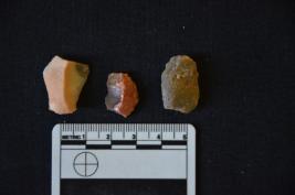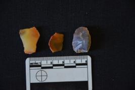 | Description / विवरण | Chalcedony blade fragment has a midridge on dorsal side, striking platform, diffused bulb on ventral side, broken from distal end, use-wear marks on cutting edges and triangular cross-section. |