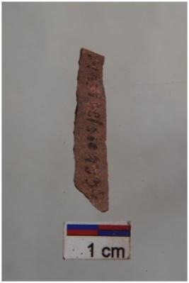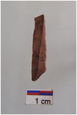 | Description / विवरण | Backed blade, use-ware marks on one working edge, a ridge on dorsal surface. |