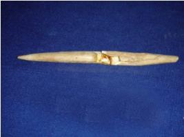 | Description / विवरण | Bone point, It is broad in the middle part and pointed at one end and other end is broken. It is broken into half near the centre and a fragment is missing. |