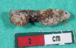 | Description / विवरण | Fragment of a point with incrusted and rough surface. |
