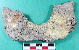 | Description / विवरण | A U-shape horse shoe with incrusted and ough surface. |