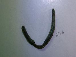 | Description / विवरण | It is a copper fish hook moulded from centre. Layer of green patina is visible |