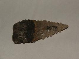 | Description / विवरण | It is a stone Denticulated Blade white in color, with conical structure having zigzag edge. |