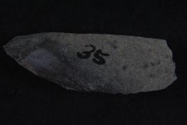 | Description / विवरण | This is a blade made of chart. It has both side fine edge. Its middle part is some raised. Its back part is plane. It may be used for scraping and cutting. Surface is fleshy. Its color is little brown. It is made by flaking technique. |