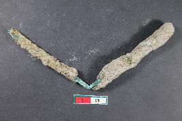 | Description / विवरण | A bent pin having incrusted and rough surface. |