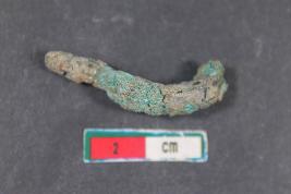 | Description / विवरण | Entirely incrusted fragment of a hook having rough surface. |