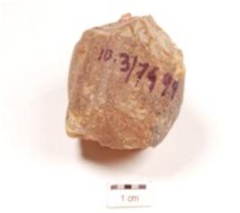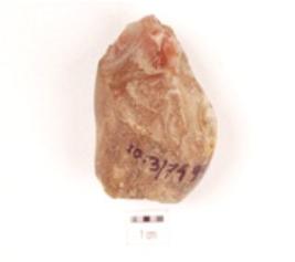 | Description / विवरण | A chert core with flake scars and cortex partly intact on surface. |