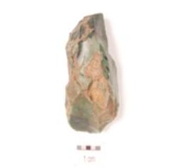 | Description / विवरण | A core made on chalcedony flake, flake scars on the one side, blade scars on the other side. |