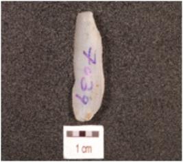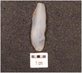 | Description / विवरण | A blade made on chalcedony, flake scars on the dorsal side, wavy cutting edges. |