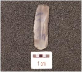 | Description / विवरण | A blade made on chalcedony, flake scars on the dorsal side, transparent, smooth surface, cutting edges. |