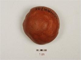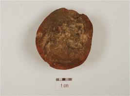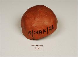 | Description / विवरण | Fragment of terracotta sling ball, circular in shape and treated with red slip. |