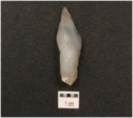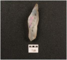 | Description / विवरण | A blade made on chalcedony with double ridge, use wear marks, pointed along the distal end and trapezoidal in section. |