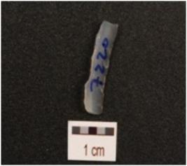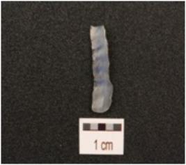 | Description / विवरण | A blade made on chalcedony with single ridge, broken on both ends, use wear marks on the cutting edge and triangular in section. |