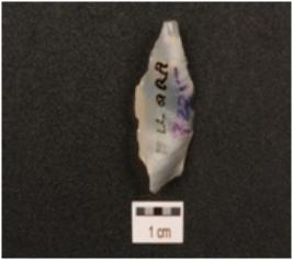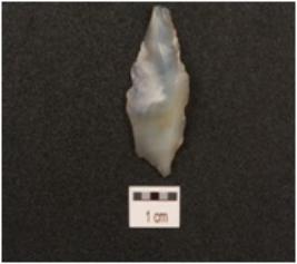 | Description / विवरण | A blade made on chalcedony with a single ridge, chipped off diffused bulb, use wear marks at cutting edge and triangular in section. |