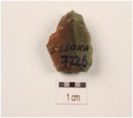 | Description / विवरण | A flake made on chert with prepared platform, bulb on ventral side, broken at distal end, smooth surface and plano convex in section. |