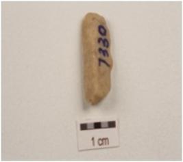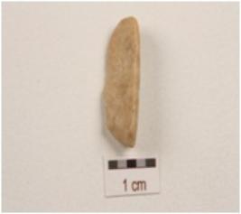 | Description / विवरण | A flake made on chert, wavy cutting edges, mid ridge present. |