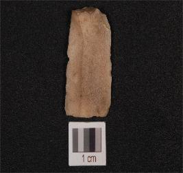 | Description / विवरण | A blade made of chert with two ridge on dorsal side and has use wear marks on the cutting edges. |