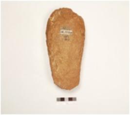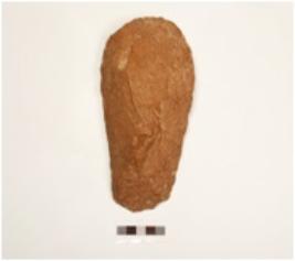 | Description / विवरण | Handaxe made of end struck quartzite flake prepared platform on proximal end flake scars on both sides, triangular in section. |