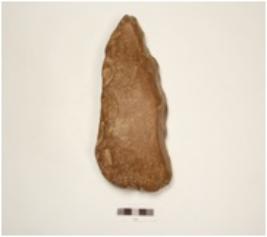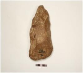 | Description / विवरण | Cleaver made of side struck quartzite flake, prepared platform flake scars on both sides, cortex on surface, broad cutting edge. |