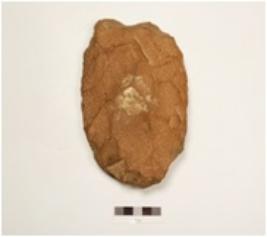 | Description / विवरण | Scraper made of quartzite pebble, flake scars on both sides, sharp cutting edge, biconvex in section. |