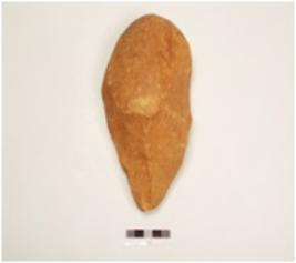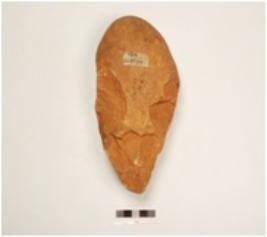 | Description / विवरण | Handaxe made of pebble, flake scars on both sides biconvex in section. |