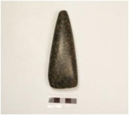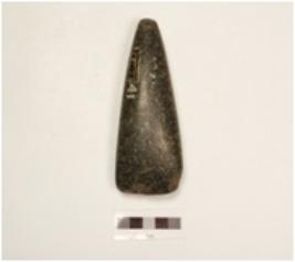 | Description / विवरण | A dolerite adze with smooth surface, one edge is sharp triangular in section. |