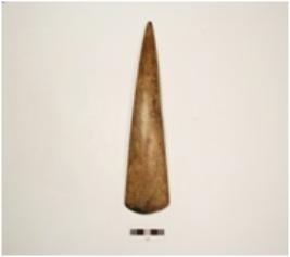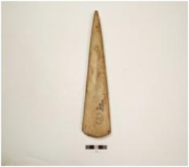 | Description / विवरण | Adze made of basalt, angular flat butt, bevelled edge, fully polished flat base, plain convex section, whole polish intact. |