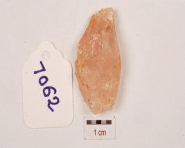 | Description / विवरण | Roughly triangular shaped quartz flake with irregular surface and sharp around the edges. |