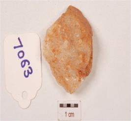 | Description / विवरण | A side scraper made on quartz with prepared platform and prominent bulb on the vental side, use-ware marks along the cutting edges and cortex at one end. |