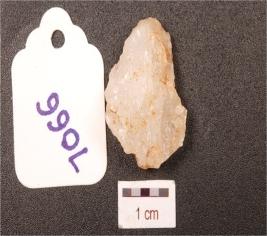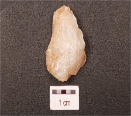 | Description / विवरण | Roughly triangular shaped flake made on quartz with plain under surface and sharp edges. |