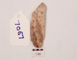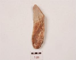 | Description / विवरण | A microlithic blade made on chert with a prepared platform and prominent bulb on the ventral side, use-ware marks along the cutting edges, cortex retained at distal end. |