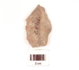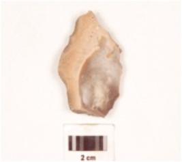 | Description / विवरण | Flake made on chert, prepared platform, prominent bulb on ventral side, irregular ridges on the dorsal side and flake scars on the surface. |