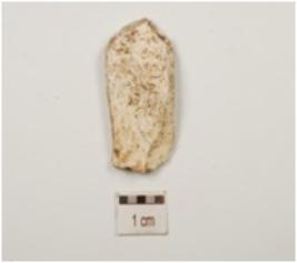 | Description / विवरण | A chert blade with single ridge on dorsal, triangular cross section and broken along one end. |