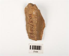 | Description / विवरण | A scraper with sharp broad working edge, flake scars marks visible on surface. |