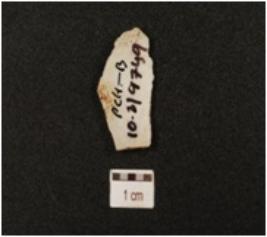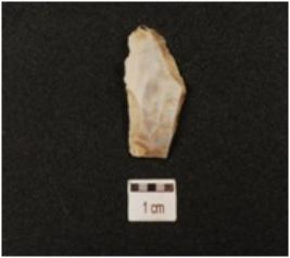 | Description / विवरण | A chert utilized flake with two blade scars, ripple marks on surface and use wear marks on edges. |